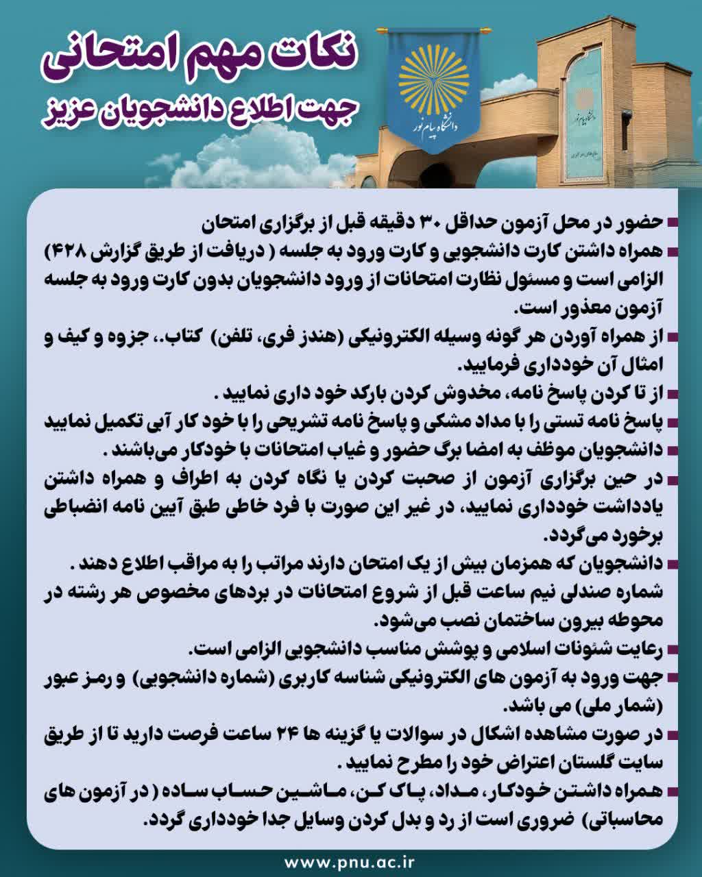 قابل توجه دانشجویان دانشگاه پیام نور سراسر کشور